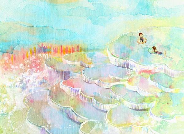 トルコにあるパムッカレという温泉をイメージして描きました。