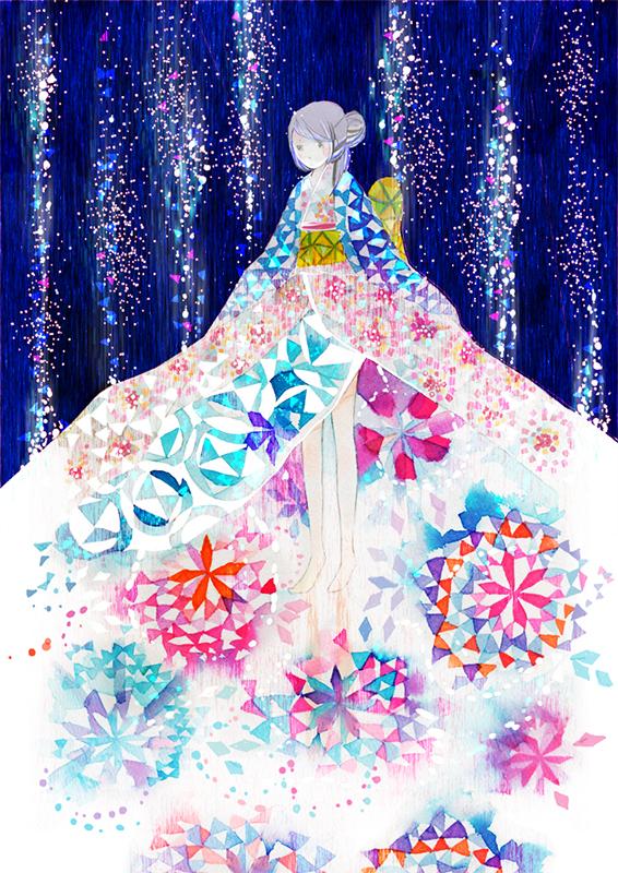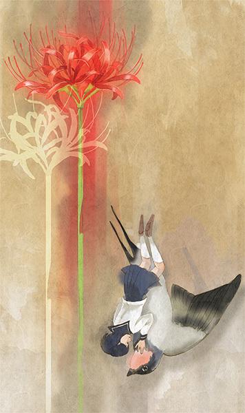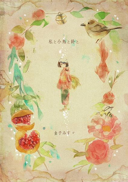 金子みすゞ著「私と小鳥と鈴と」の挿画をイメージして描きました