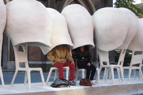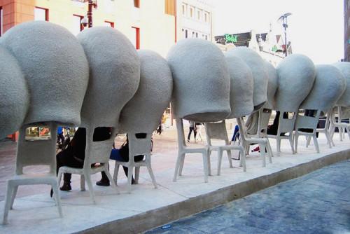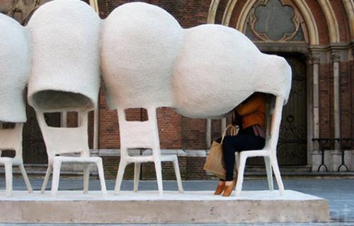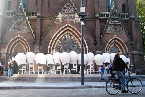 这可以说它是艺术品,或者说他是公共设施,这些奇怪的椅子在荷兰埃因霍温卡特丽娜大教堂前面,是设计师Nacho Carbonell 为荷兰设计周设计的。